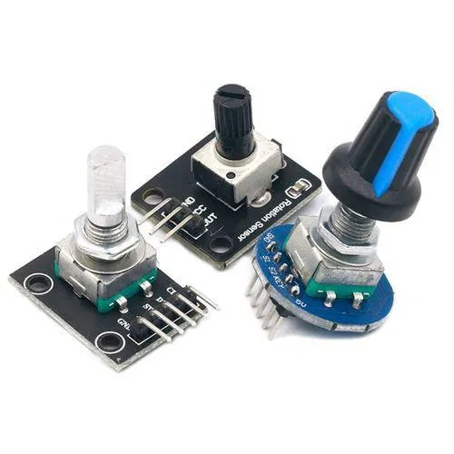 不同于普通电位器,电位计一般只能旋转大约 3/4 圈,而旋转编码器可以无限旋转,并能精确测量相对位置变化。旋转编码器是电位器的现代数字等效物,并且用途更广泛