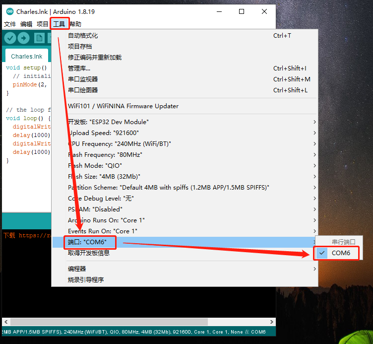 接着,选择 ESP32 对应的端口,