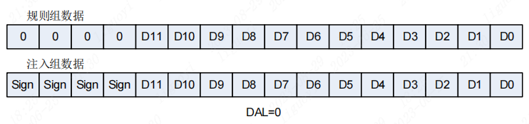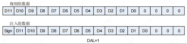 在左对齐模式下,ADC的数据被左对齐到最高位,不足的位数在低位填充0。左对齐模式可以提高分辨率,但会导致动态范围降低