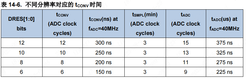 GD32F470ZGT6的分辨率可以配置为6、8、10、12 位。我们可以通过降低 ADC 的分辨率,获得较快的转换时间(tADC)。 对于那些不需要高精度数据的应用,可以使用较低的分辨率来实现更快速地转换
