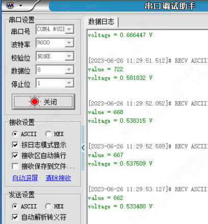 以上代码需要注意的是使用ADC功能时,引脚必须设置为模拟浮空模式,如设置为上拉或下拉模式,则采集的电压是不准确的