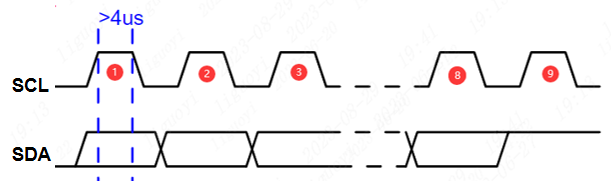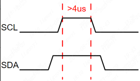 起始信号:SCL在高电平的状态下,SDA的电平由高转低,表示开始一次通信