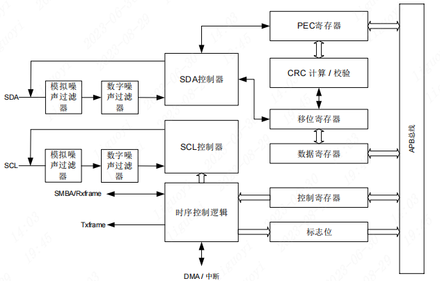 硬件I2C还可以支持中断和DMA。它可以通过中断或DMA方式与处理器进行通信。这使得处理器可以在数据传输期间进行其他任务,提高了系统的效率和性能