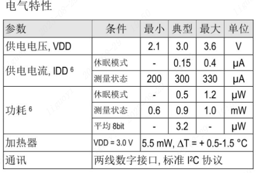 SHT20温湿度传感器的相关参数,见下图: