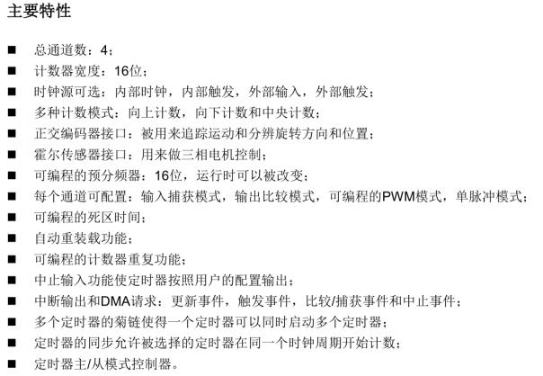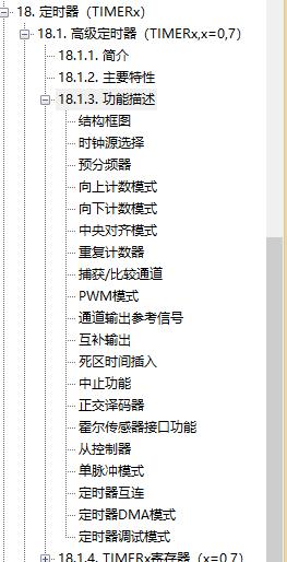 关于更多高级定时器的功能描述可以查看用户手册的第357页,具体功能目录如图1-3-2所示