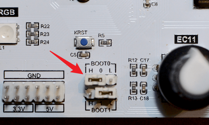 2️⃣ 将 BOOT0 跳线帽改到 H