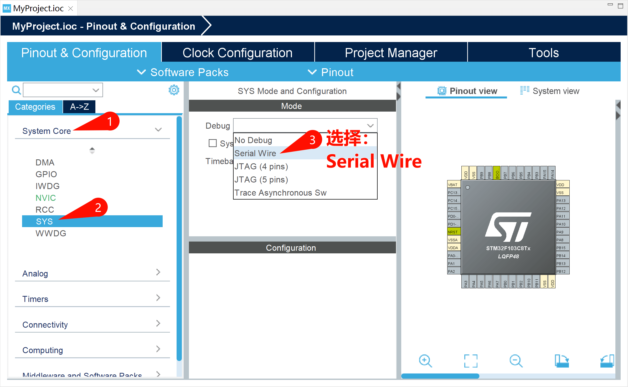 在每次新建工程后,就配置 Debug 模式设为 Serial Wire