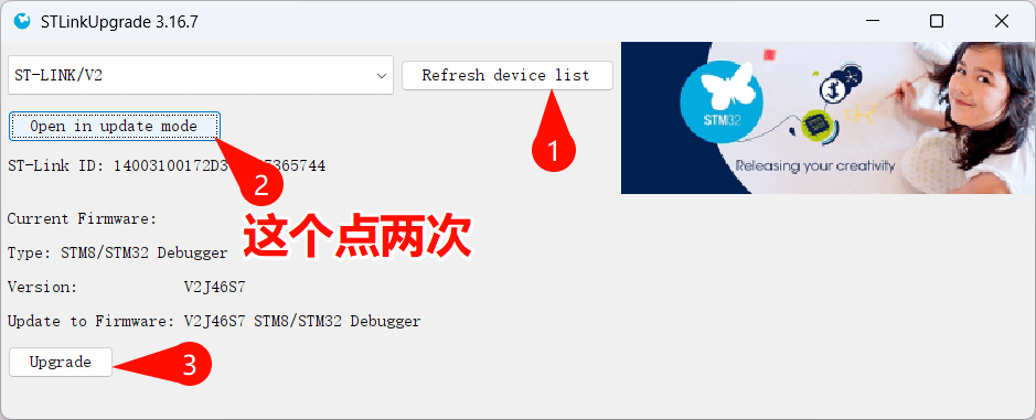 提示:通过反馈发现,市面存在部分 ST-LINK 无法升级,原因不明,建议换个 ST-LINK
