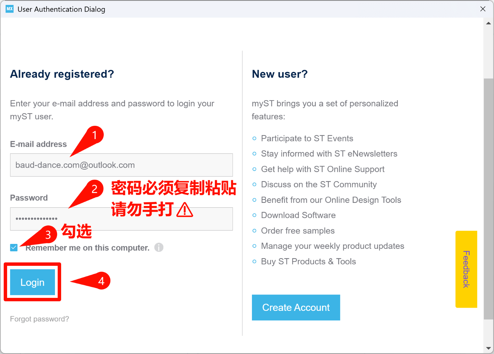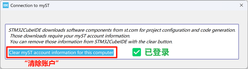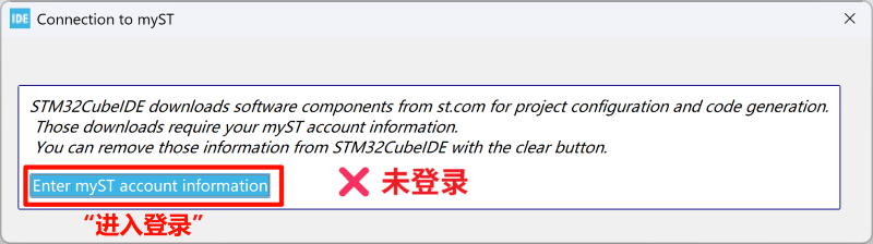 按钮显示 Enter myST account Information,需要登录,请按下面的步骤操作