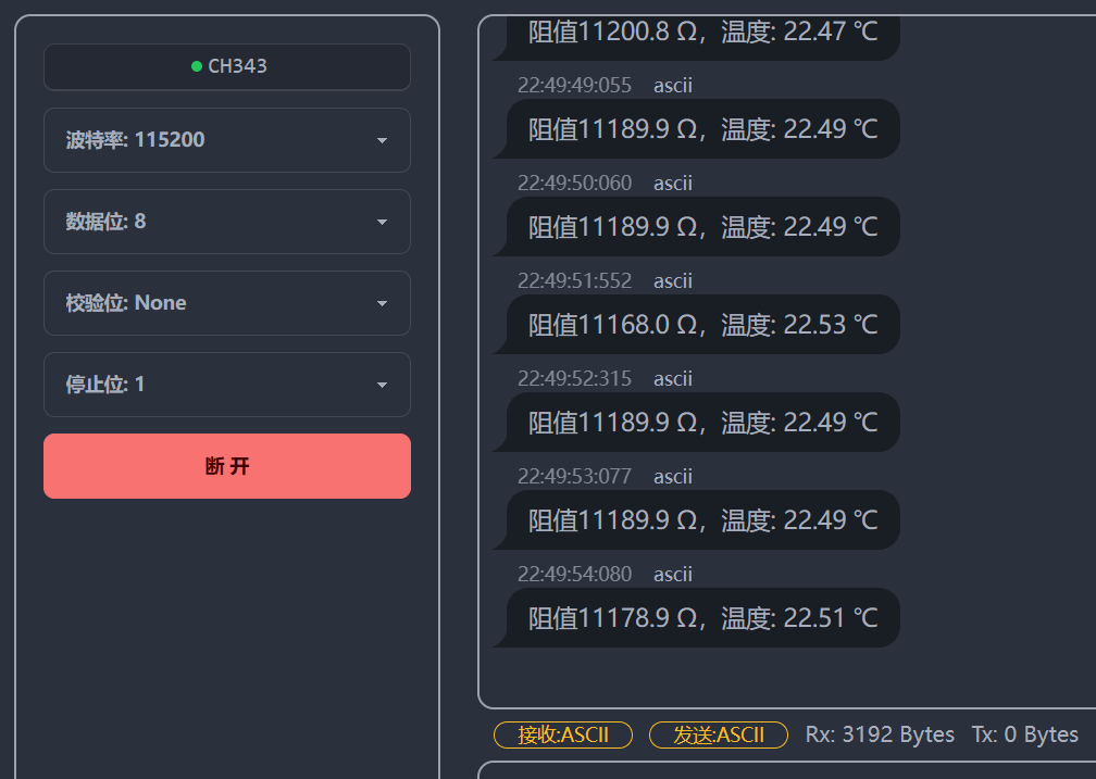 通过 ADC 转换器,读取 NTC 热敏电阻的电压,实现温度测量
