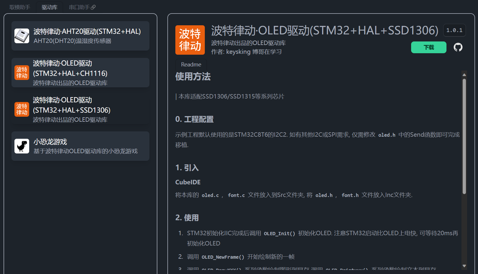 - SSD1306 驱动库:https://led.zhxy.net/