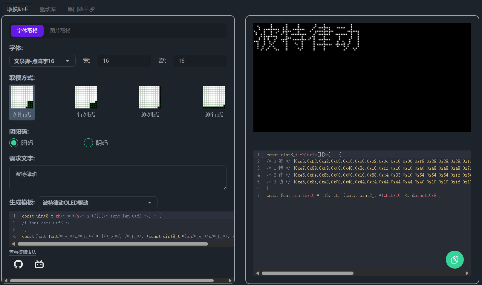 - 在线取字模工具:https://led.zhxy.net/