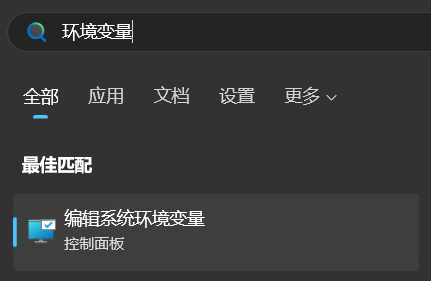 - 点击开始菜单,输入“环境变量”搜索,进入系统属性设置