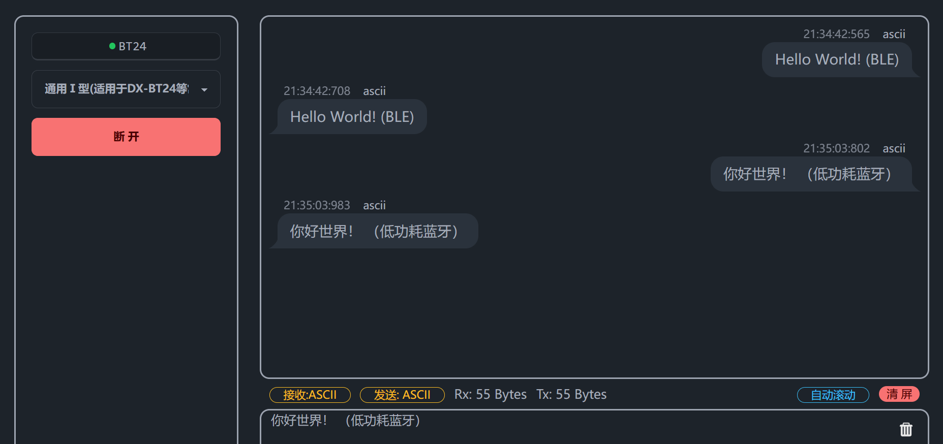 使用配套的 DX-BT24 模块,实现蓝牙透传通信