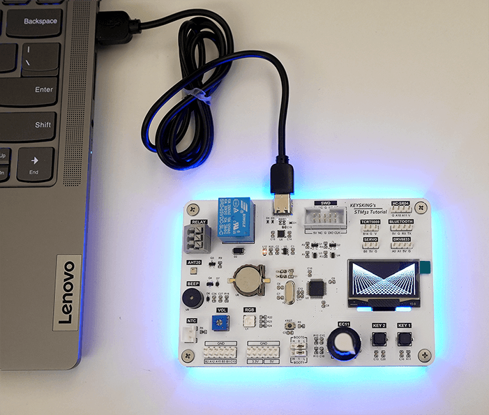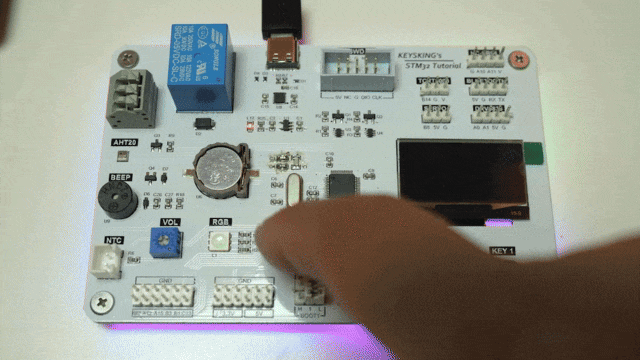 学习板出厂时自带一个出厂演示程序 🔗,通电后会自动点亮并运行