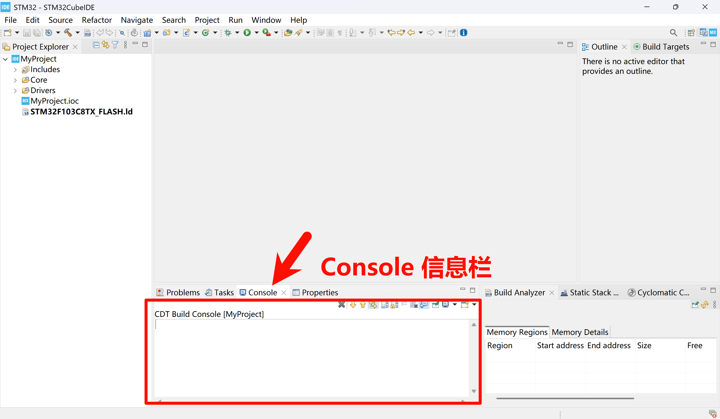 按上一步的方法打开 main.c 文件后,Console 信息栏就会显示出来