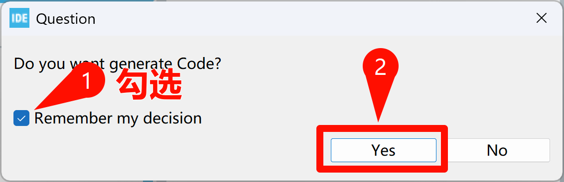 系统会弹出提示,询问是否在保存的同时生成代码,选择 Yes