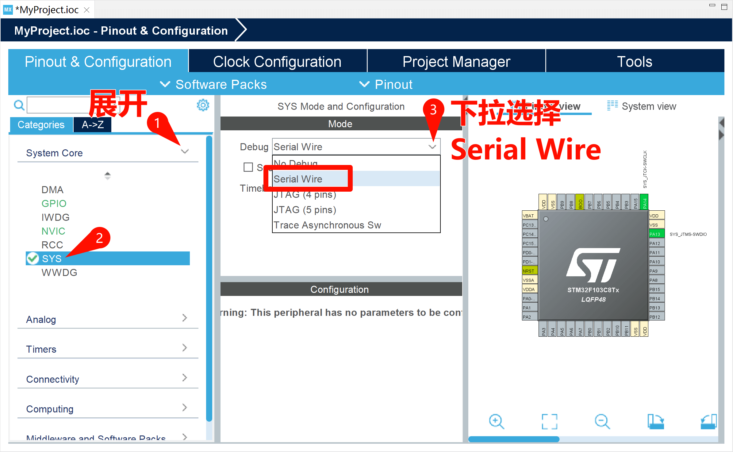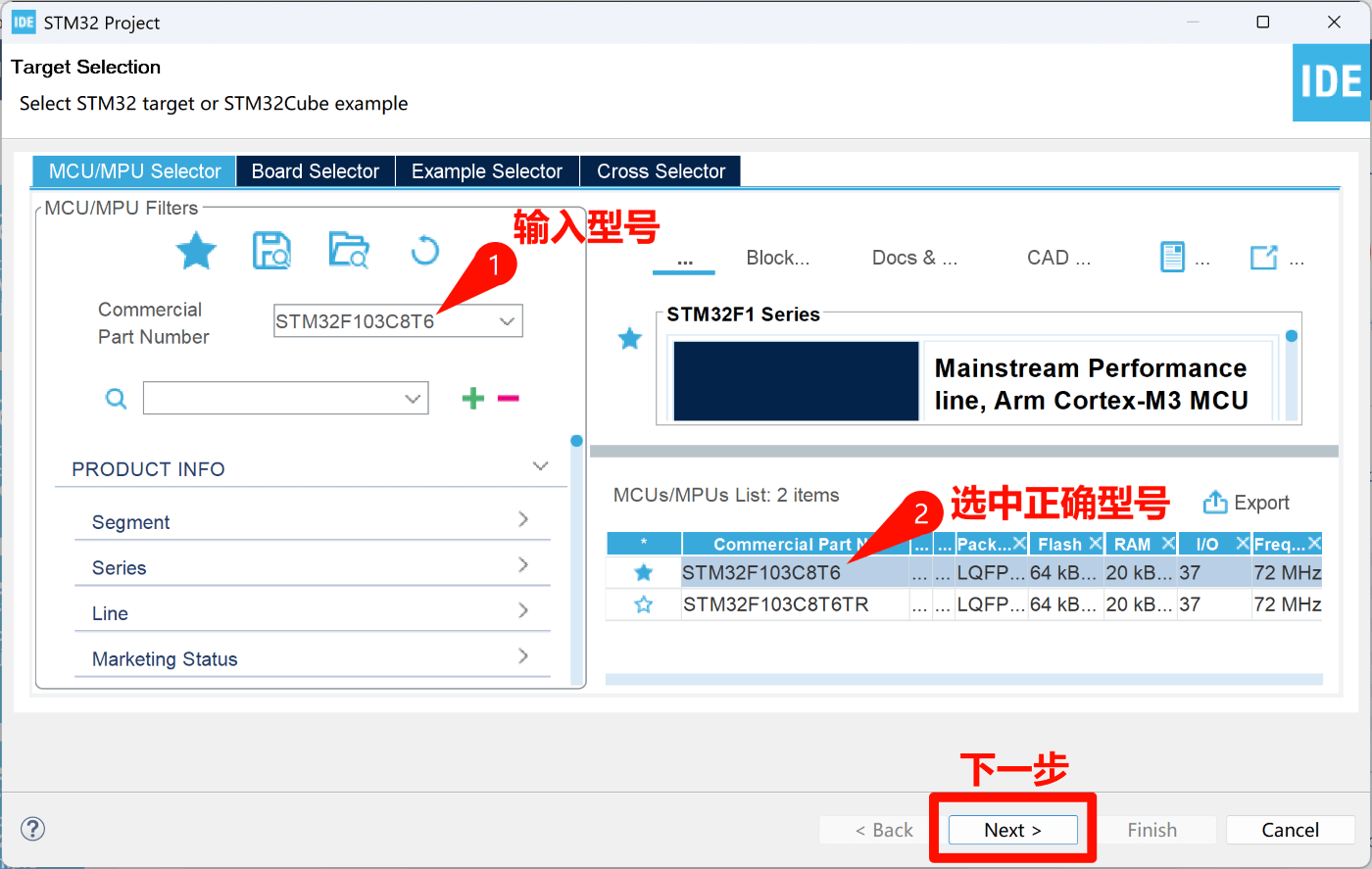 2️⃣ 选择单片机型号 STM32F103C8T6