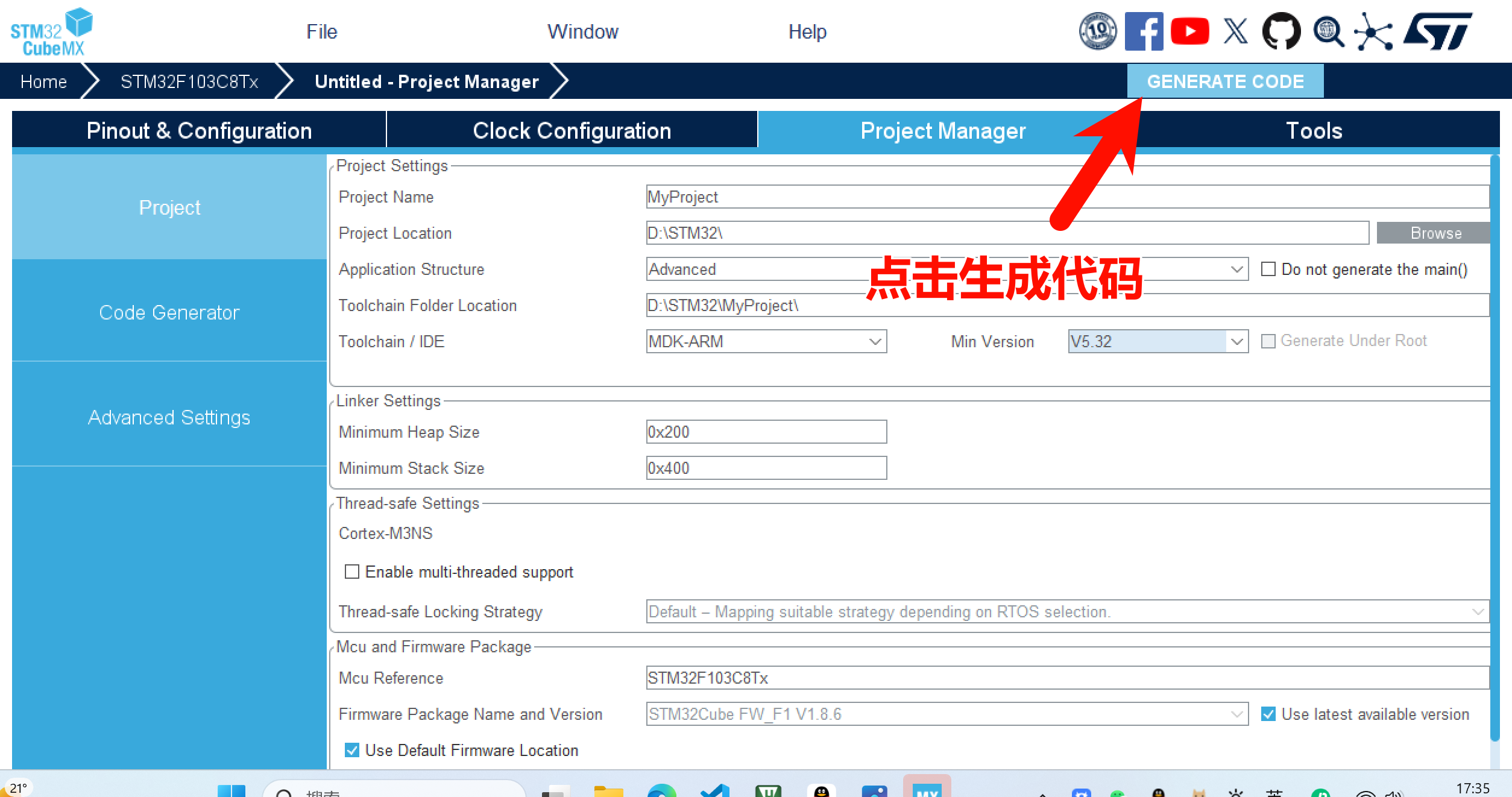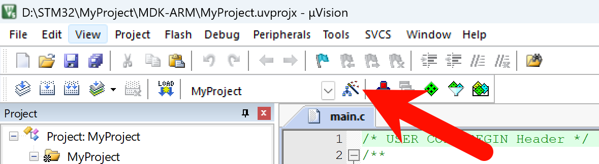 点击 OPEN Project 即可在 Keil 中打开工程