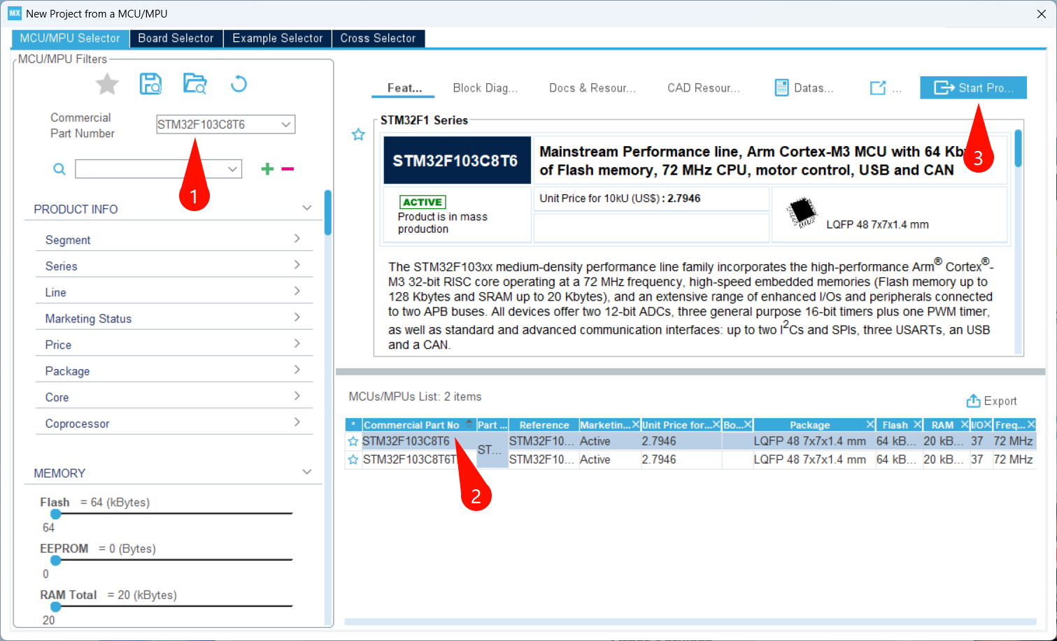 2️⃣ 选择单片机型号 STM32F103C8T6